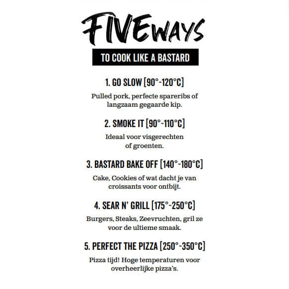 Plaats de Half Moon druippan van The Bastard onder uw braadstuk om vocht en vet op te vangen. Hiermee voorkomt u opflakkeren van het vuur en houdt u uw platesetter schoon.