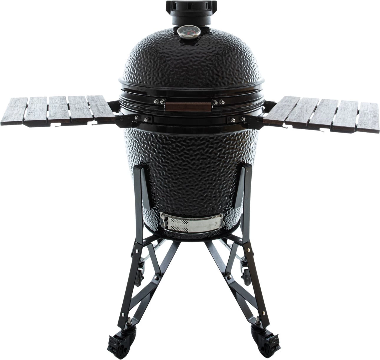 The Bastard Medium heeft een gietijzeren precisie-topschijf en een extra dik RVS-grillrooster van 6 mm. Hij staat nu nog stabieler met een van gegalvaniseerd staal onderstel. Om hem helemaal compleet te maken is The Bastard Medium voorzien van een plate setter, RVS-kolenmand en een RVS-as-opvanger.