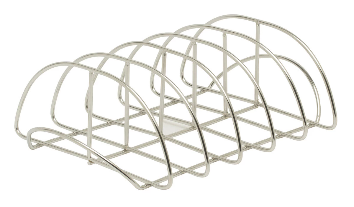 Het roestvrijstalen The Bastard Ribrack Deluxe grillrek gebruikt u voor het maken van de perfecte spareribs. Doordat de lucht genoeg ruimte krijgt om te circuleren, garen uw spareribs perfect gaar.