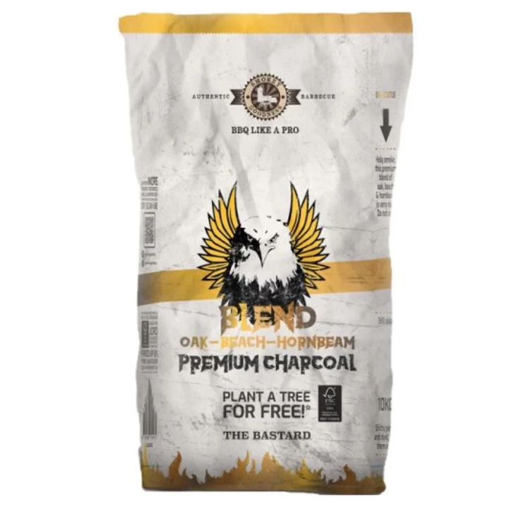 De unieke premium houtskool blend van Smokey Goodness is gemaakt van beuken-, haagbeuk, en eikenhout. Natuurlijk FSC2-gecertificeerd en uiterst modern en milieuvriendelijk geproduceerd. Deze unieke houtskoolblend ontbrand gemakkelijk en geeft binnen 15 minuten een vol en heet vuur dat lang blijft branden en goed reageert op temperatuur verschuivingen. Ideaal voor afgesloten BBQ’s. De premium blend geeft een authentieke BBQ-smaak aan al je gerechten. Deze houtskool is gemaakt van 100% natuurlijke grondstoffen van FSC-gecertificeerde bomen en steek je met een schoon geweten in de fik.